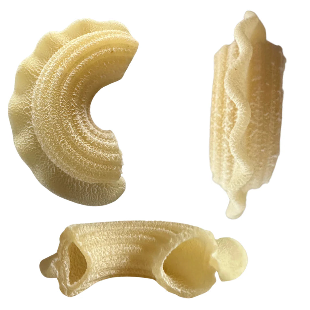 Creste Di Gallo: Named for the crest of a rooster, this rare and ridged pasta is a showstopper in the bowl and on the fork. It’s versatile, elegant, and oh-so-satisfying with just about anything.